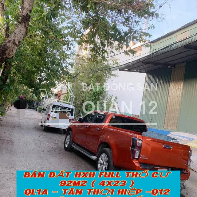 BÁN ĐẤT HXH FULL THỔ CƯ 92m2 ( 4x23 ) QL1A , PHƯỜNG TÂN THỚI HIỆP QUẬN 12 , SÁT KDC TÂN TIẾN ( T )