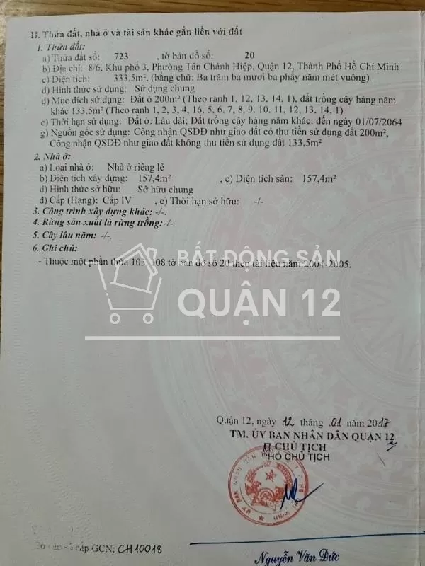 đất Tân Chánh Hiệp q12 ,,dt4x15 đường 8m giá 3,480 tỷ Tl